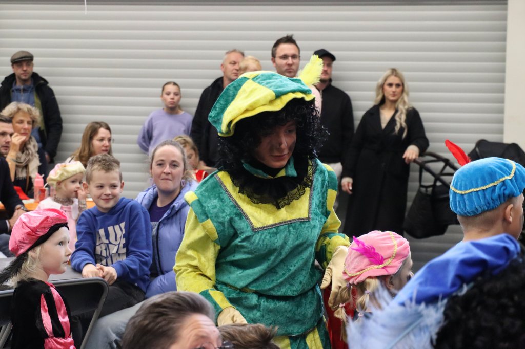 Twee Pieten waren al vroeg aanwezig om kruidnoten uit te delen, wat zorgde voor een gezellige en feestelijke sfeer in het dorp.
